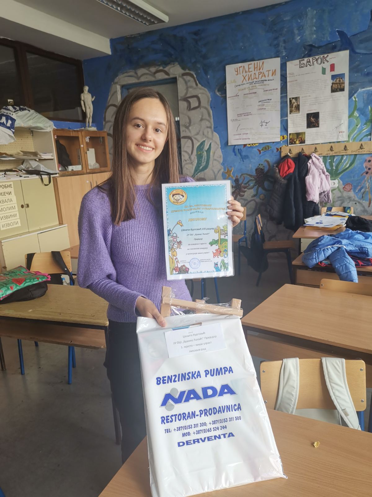 ЈУ ОШ „19. април“ из Дервенте је поводом дведесет година Фестивала дјечијег осмијеха расписала конкурс под називом „Чаролија осмијеха“. Наша ученица и активни члан ликовне секције, Џенита Куртовић, је осовојила прво мјесто на овом конкурсу. Тим поводом су јој уручене награда и захвалница за учешће на конкурсу.