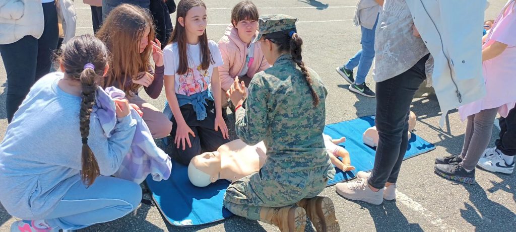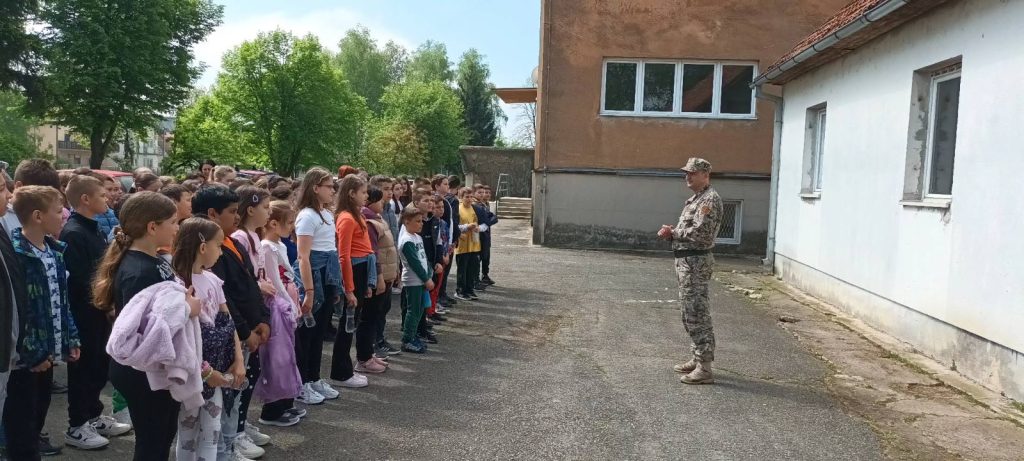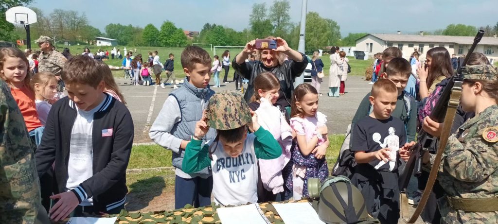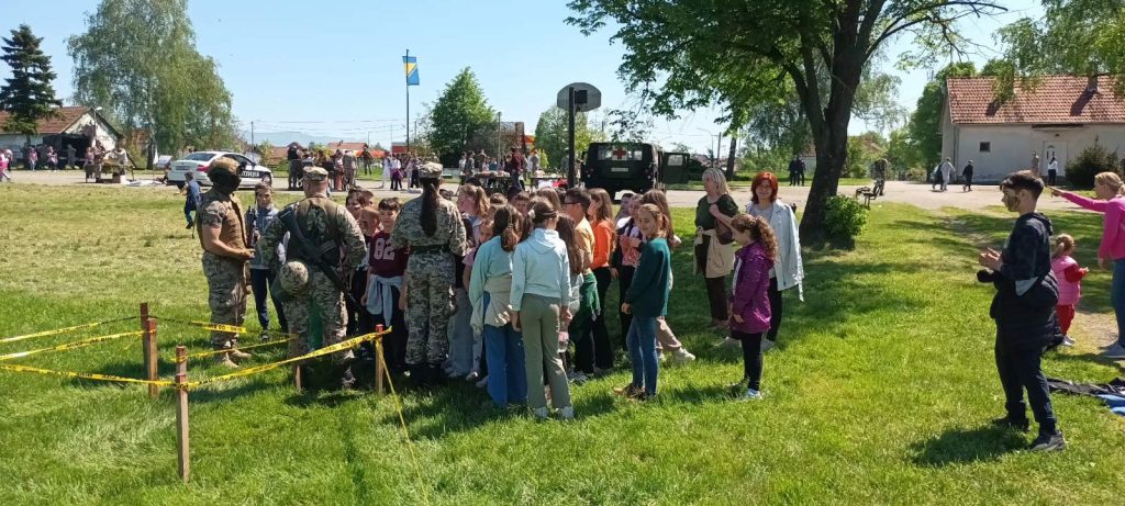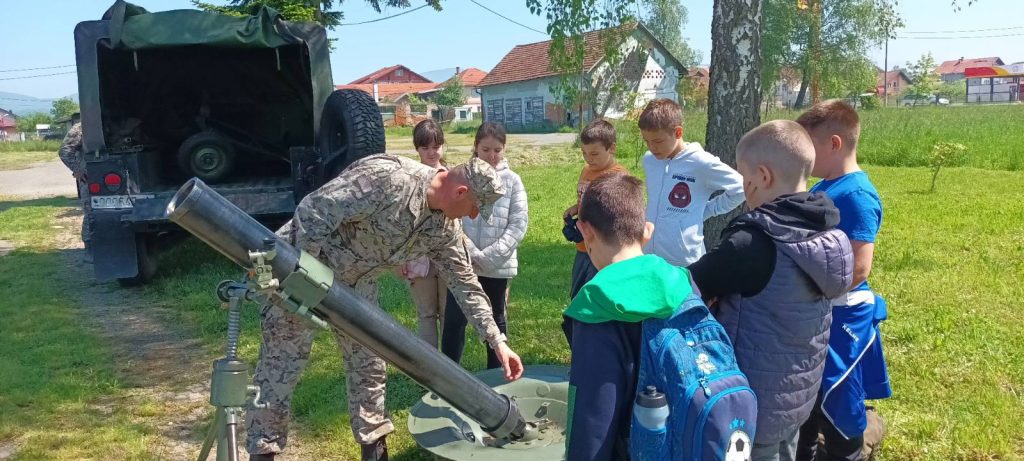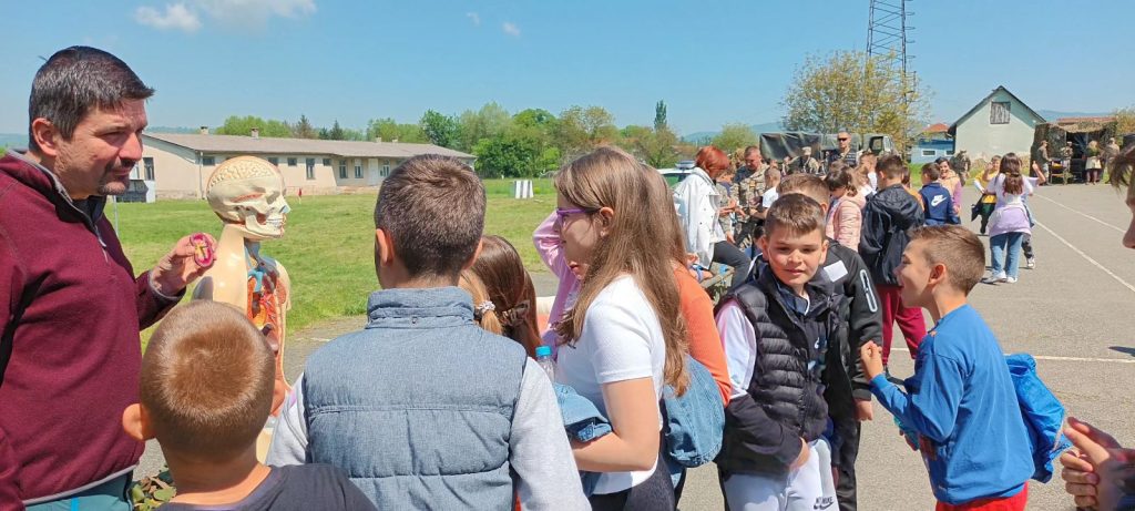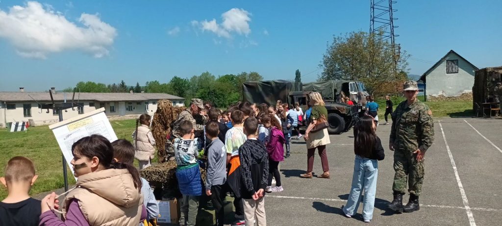 Присутне ученике је испред касарне поздравио командант, господин Славиша Шобот, након чега је организован обилазак и представљање различитих садржаја. Ученицима је представљено наоружање и материјално-техничка средства која се користе у оквиру Оружаних снага БиХ. Такође, приказана је показна вјежба пружања прве помоћи, као и мини полигон за обуку.