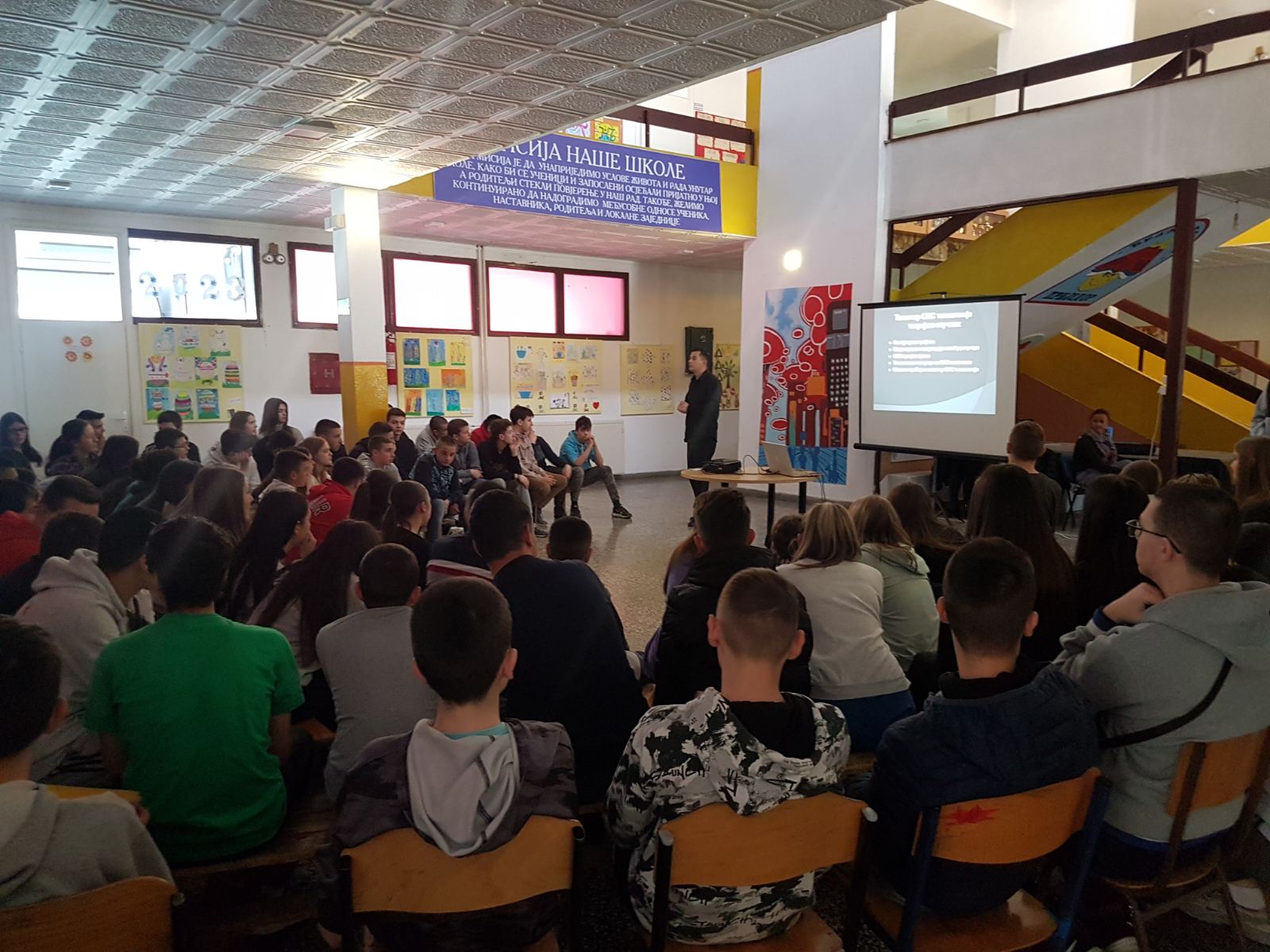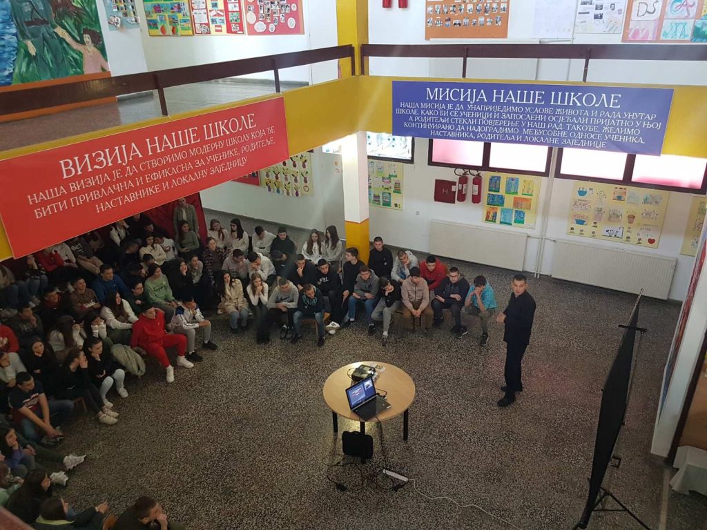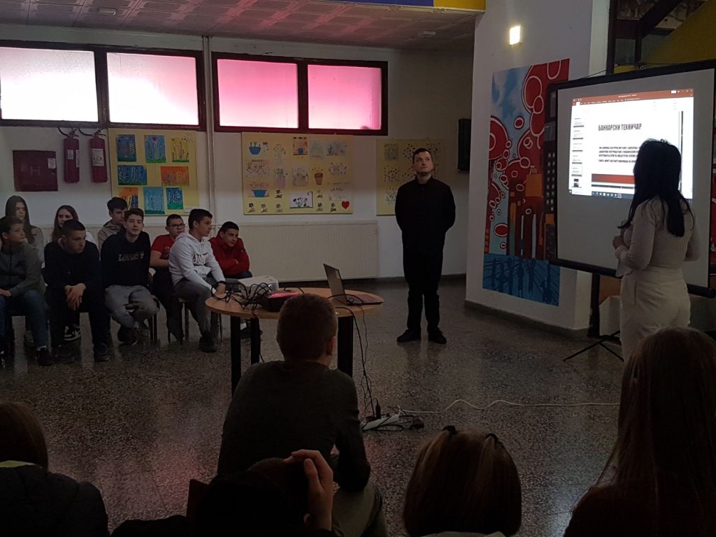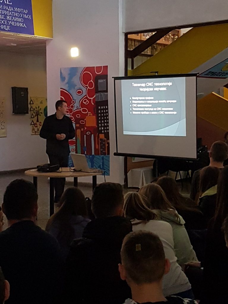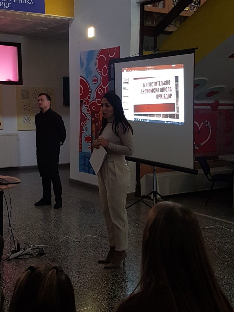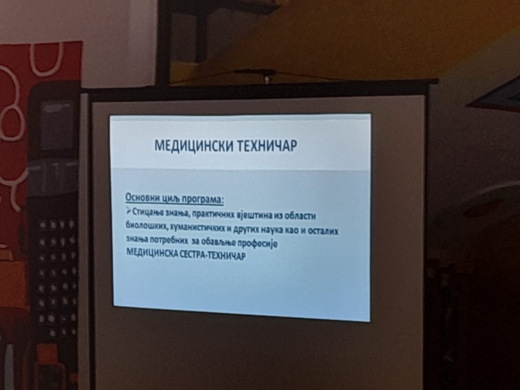 Нашу школу су данас посјетили професори и ученици приједорских средњих школа који су презентовали свој рад и планове за предстојећи уписни рок. На овај начин су мали матуранти сазнали које смјерове или занимања нуде средње школе, који су услови уписа и услови школовања у појединим школама. Презентације су одржале: Електротехничка, Машинска, Медицинско-грађевинска и Економска школа. Предавања су одржана у склопу професионалне оријентације за ученике деветог разреда.