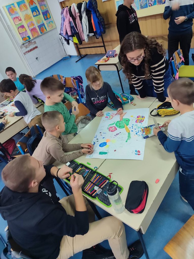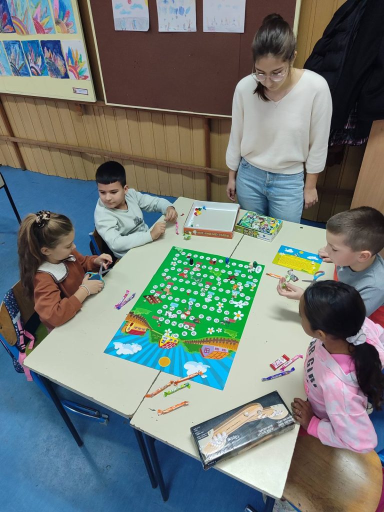 Током једног школског часа, ученици су уживали у читању и разговору о бајкама, као и у заједничком игрању друштвених игара. Дружење је протекло у лијепој атмосфери, подстичући код дјеце љубазност, емпатију и међусобно уважавање.