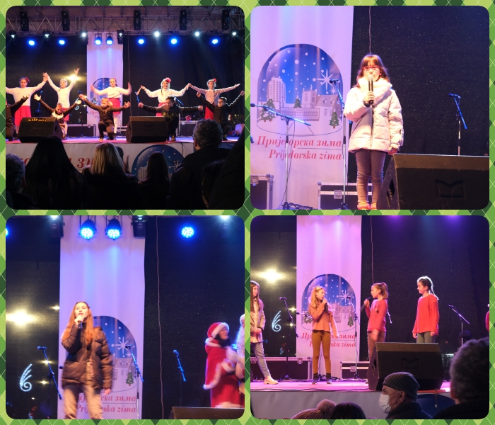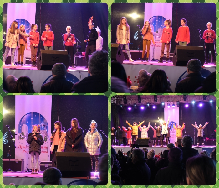 У оквиру манифестације „Приједорска зима“ ученици наше школе представили су се новогодишњим програмом на платоу Трга Зорана Карлице. Школске сеције су одабраним тачкама драмске, рецитаторске, ритмичке, фолклорне и осталих секција, показали да су и уз појачане епидемиолошке мјере, вриједно радили са својим учитељима и наставницима.