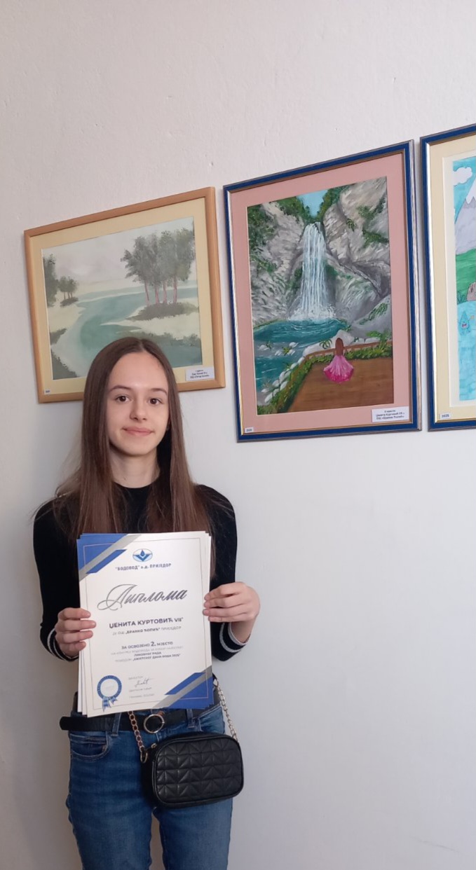 Поводом Свјетског дана вода који се обиљежава 22. марта, ученици еколошке секције наше школе су посјетили предузеће „Водовод“ Приједор. Овом приликом уценици су обишли контролну собу, лабораторију и службу за детекцију. Током обиласка уценици су сазнали на који начин се одржава систем, како се долази до здравстено исправне и чисте воде и на који начин се врши водоснабдијевање. Ученица седмог разреда, Џенита Куртовић, је освојила друго мјесто на ликовном конкурсу под називом „Здрава вода“ те јој је овом приликом уручена диплома и награда.