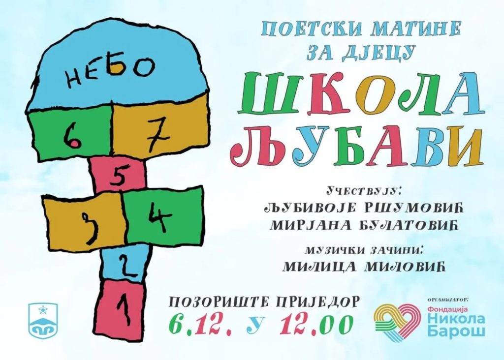 Данас су ученици петог разреда наше школе присуствовали су поетском матинеу под називом ШКОЛА ЉУБАВИ, који је одржан у Позоришту Приједор. Своје стихове су говорили истакнути пјесници Љубивоје Ршумовић и Мирјана Булатовић, док је музички дио програма уљепшала Милица Миловић.