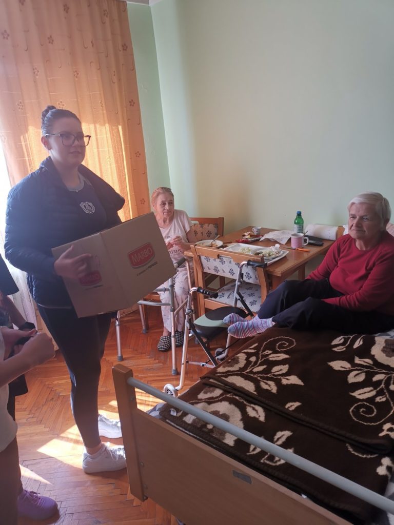 Представници Савјета ученика су посјетили Дома за пензионере и старија лица и уручили поклоне прикупљене у хуманитарној акцији. Ученици су се дружили са штићеницима дома, а њихова посјета је изазвала радост и одушевљење старијих особа који бораве у дому.