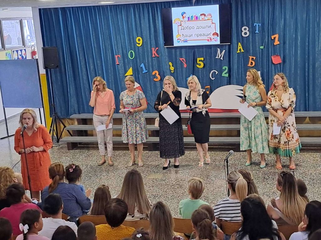 Данас је у нашој школи организован свечани пријем за најмлађе ђаке прваке. Најважнији моменат сваког школарца почео је уз игру, пјесму и забаву коју су припремили њихови старији другари, прошлогодишњи прваци, са својим учитељицама.