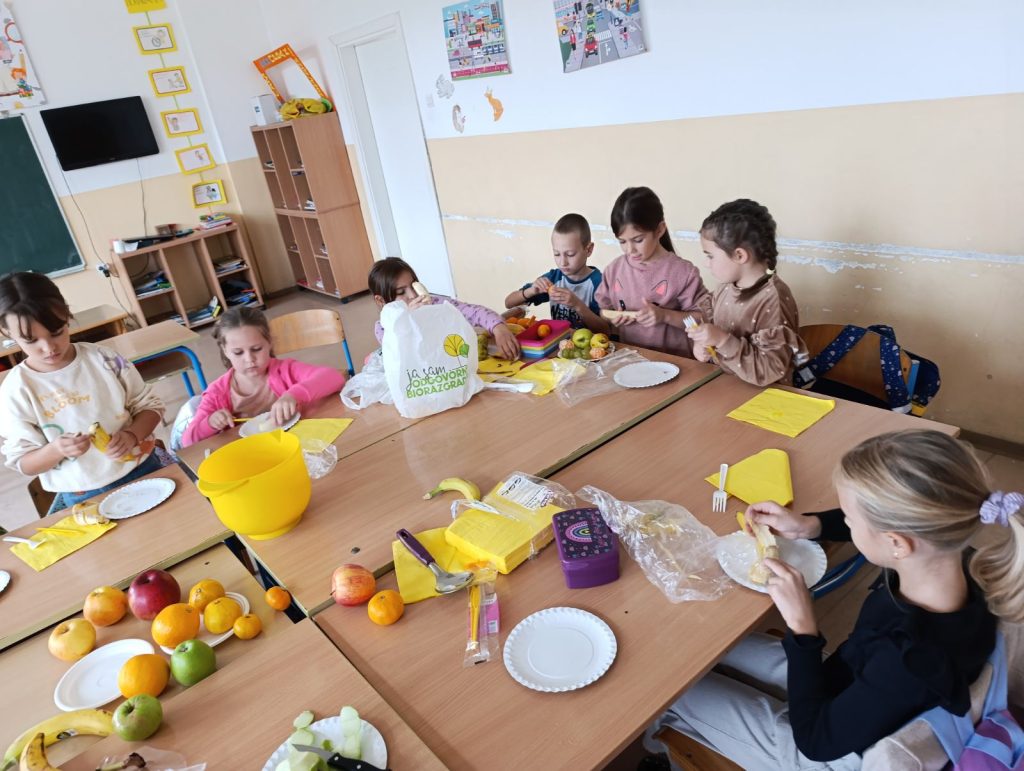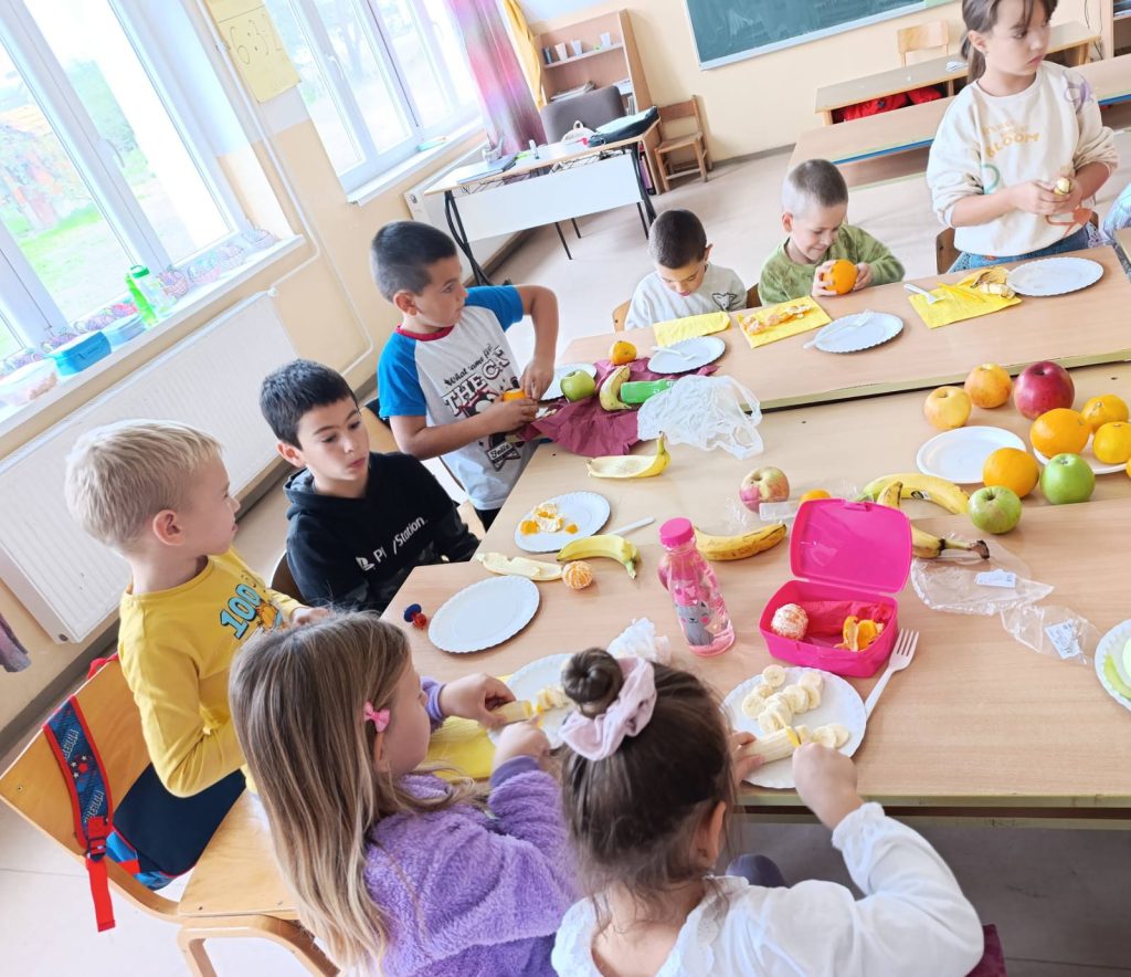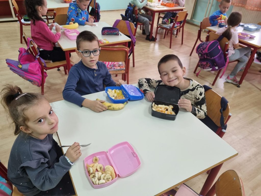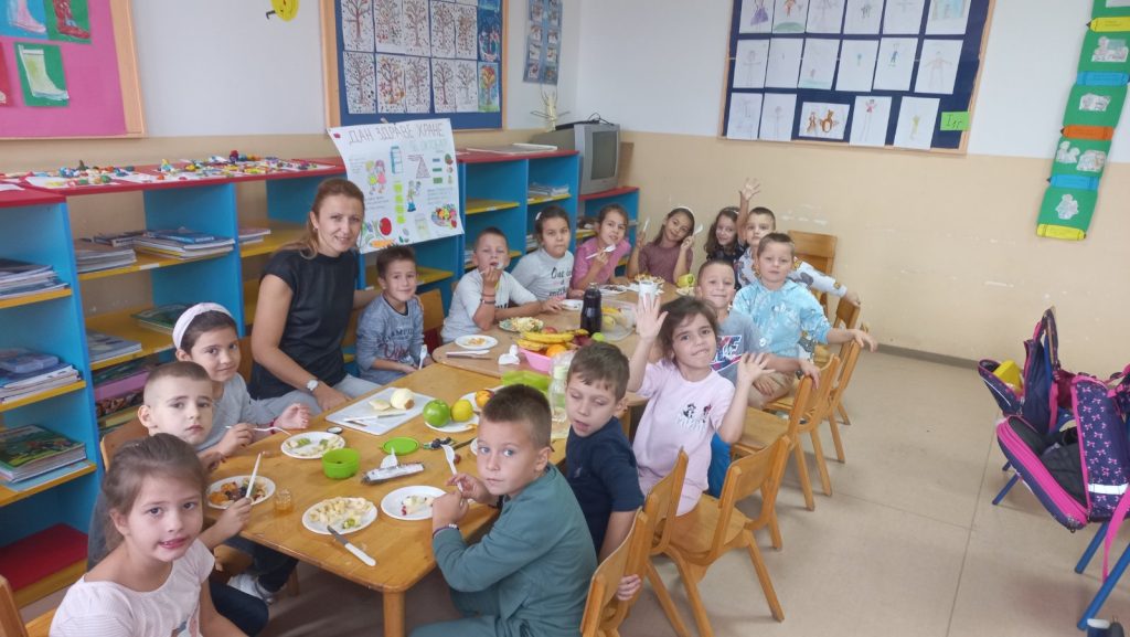 Наши прваци су овај важан датум обиљежили низом занимљивих активности у учионици: слушали су пјесме о здравој храни, бојили воћке и украшавали учионицу, правили су занимљив одјељењски пано, провјерили кроз квиз питања колико знају о важности здраве исхране и многе друге.