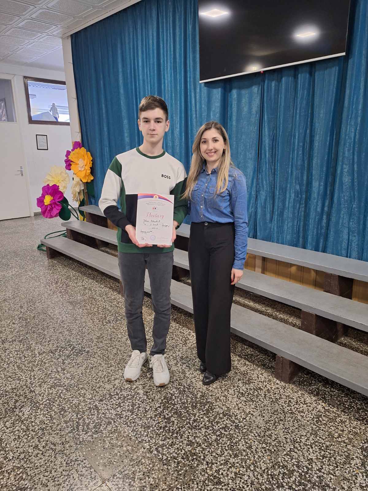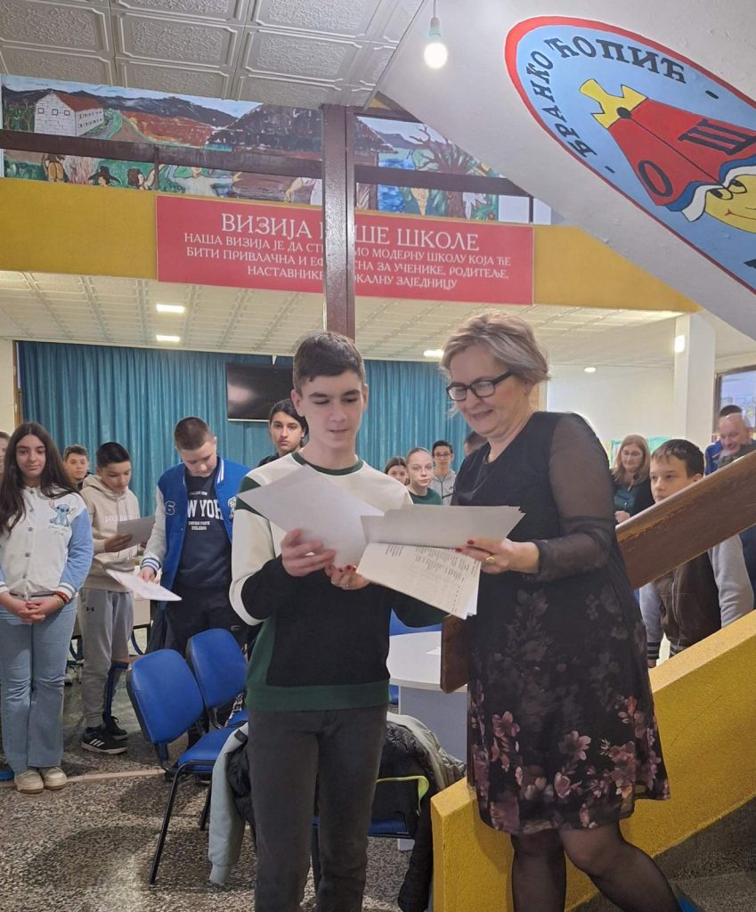 На регионалном такмичењу из математике које је у суботу одржано у просторијама наше школе Јован Новковић је представљао школу на нивоу седмог разреда и освојио четврто мјесто. Честитамо ученику и наставници Јовани Прошић!