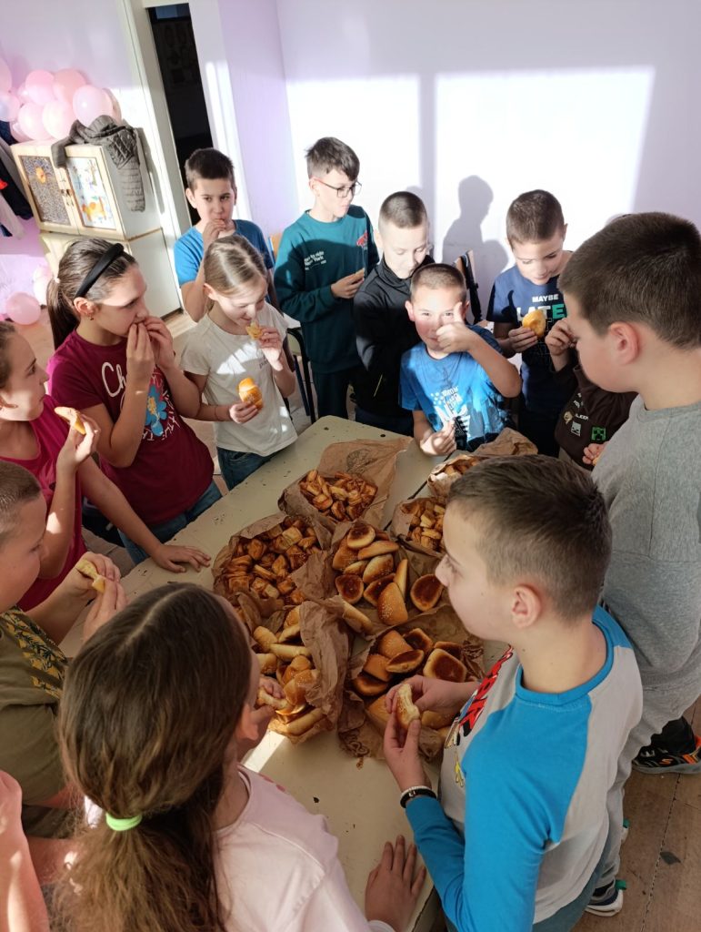 Посебно одушевљење изазвала је дегустација сланог и слатког програма пекаре „Саванели“ којом је господин Матковић обрадовао и ученике.4-1, 4-2 и 6-2.