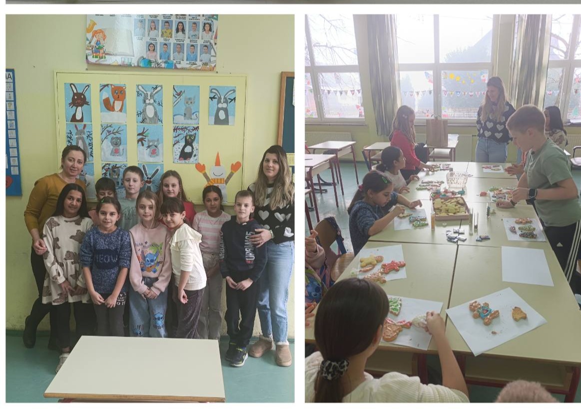 Заједно са ученицима и учитељицом Иреном, госпођа Зекановић одржала је креативну радионицу украшавања новогодишњих кексића. Уз пуно маште, осмијеха и празничног духа, настали су прави мали слатки радови.