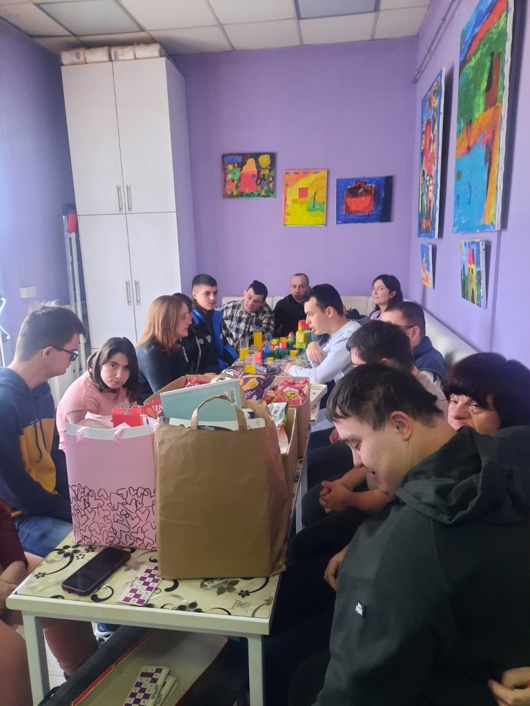 Уручивање 56 новогодишњих пакетића другарима из Центра „Сунце“.
