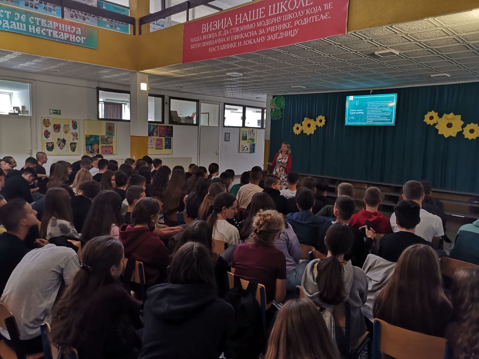 Ученици наше школе су присуствовали предавању у оквиру кампање „Школа која чује“ коју је ове школске године покренуло Министарство просвјете и културе. Циљ кампање је стварање сигурног, подстицајног и здравог окружења за свако дијете у Републици Српској, уз системски и континуиран рад на превенцији и спречавању вршњачког насиља.