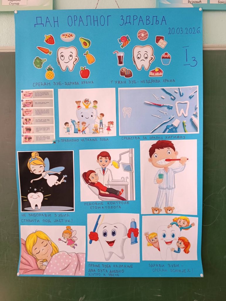У одјељењу I-3, учитељице Јелене Батоз, обиљежен је Свјетски дан оралног здравља.