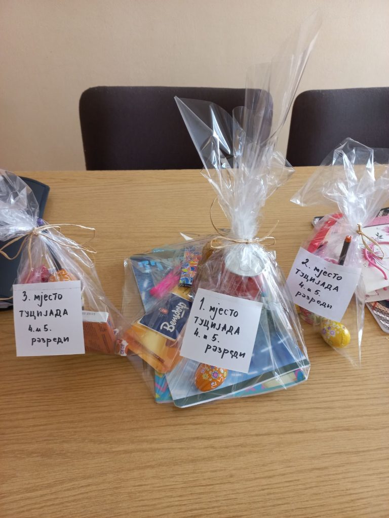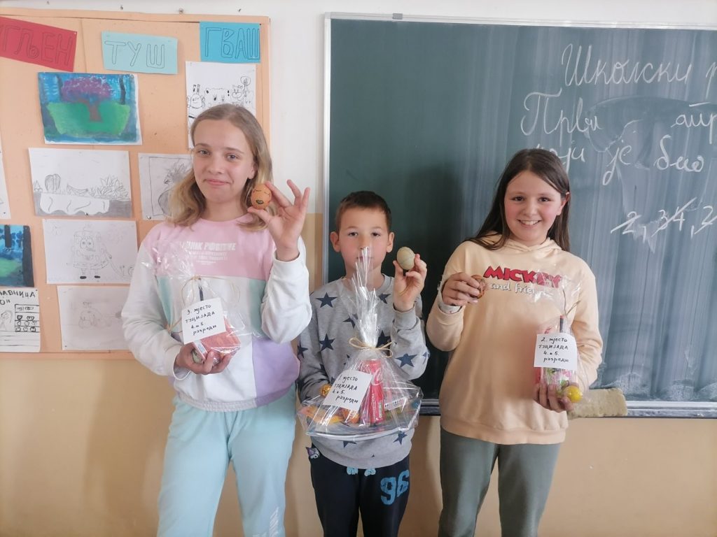 Наши другари, ученици 4. и 5 разреда из ПО Гомјеница имали су Васкршњу радионицу, на којој су заједно са својим учитељицама Драганом и Тањом, шарали јаја и дружили се. Након радионице имали су и мало такмичење, на којем су бирали најљепше и најјаче јаје. Побједници су добили и поклончиће које су у сласт подијелили са својим другарима.